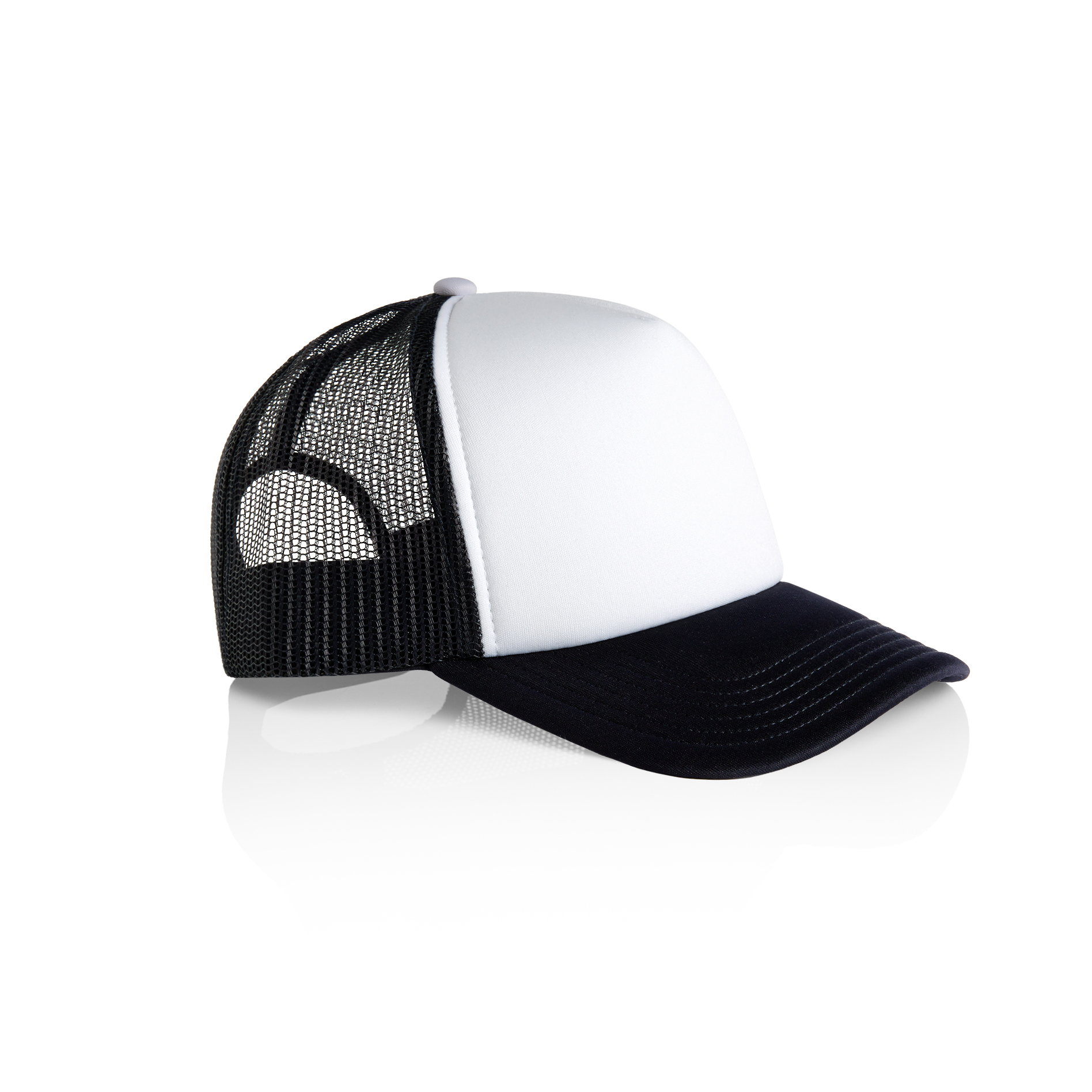 Contrast front foam panel, plastic snapback, tonal under-peak lining, mesh back